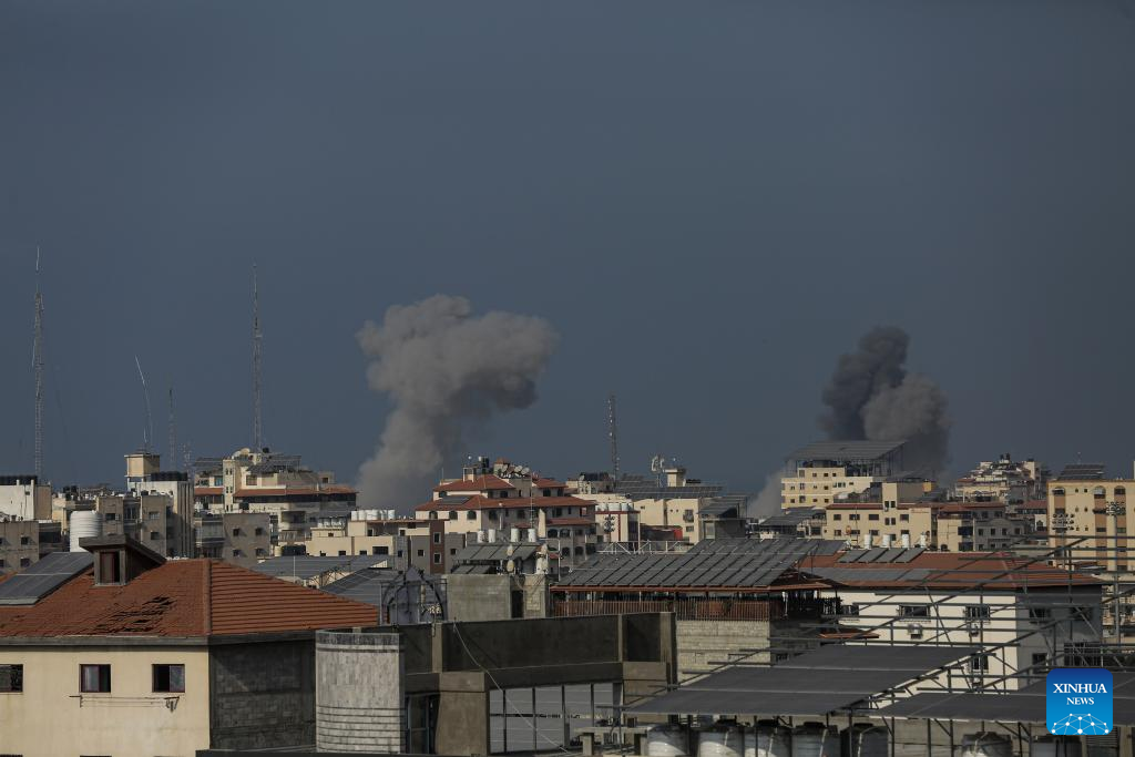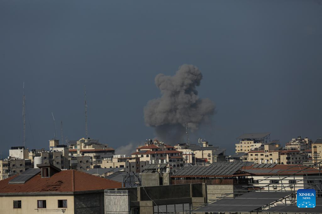 Smoke rises following an Israeli airstrike in Gaza City, on Nov. 2, 2023. The Israel-Hamas conflict, raging for nearly a month, has led to the deaths of more than 9,000 Palestinians in Gaza. On the Israeli side, more than 1,400 people lost their lives, the vast majority in the Hamas attack on Oct. 7, which triggered the latest conflict. (Xinhua)