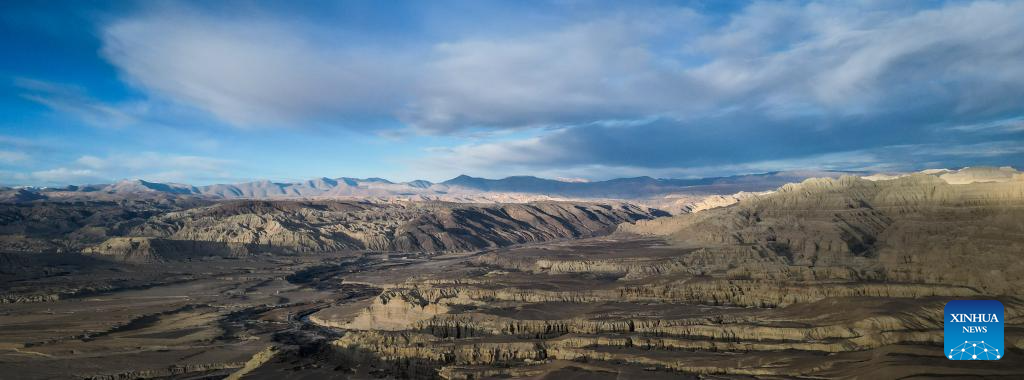 This photo taken on Nov. 2, 2023 shows the landscape of earth forest in Zanda County of Ngari Prefecture, southwest China's Tibet Autonomous Region. Zanda is famous for the unique landscape of earth forest. With gullies, ravines and steep mountainsides, the unique landscape was shaped as a result of gradual geological movements of the Himalayan region ever since the Quaternary Period from 2.5 million years ago and the impact of perennial water erosion and airslaking. (Xinhua/Chen Shangcai)