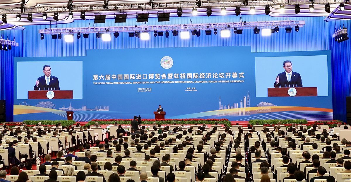 Premier Li Qiang delivers a keynote speech at the opening ceremony of the sixth China International Import Expo in Shanghai on Sunday. Zhu Xingxin / China Daily