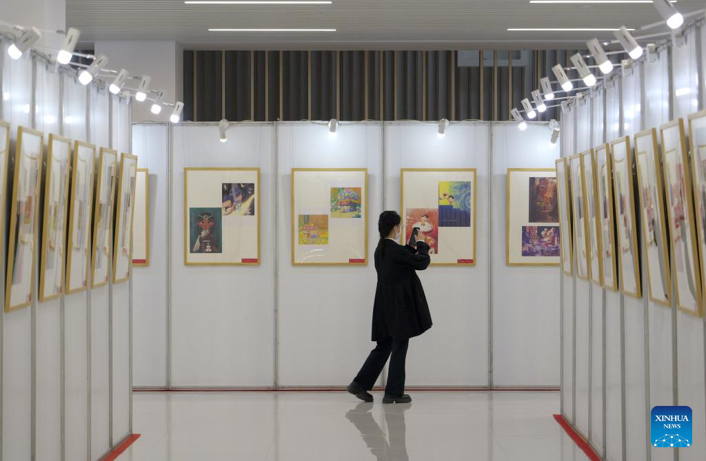 A comic enthusiast visits an exhibition during the 19th World Comic Conference in Anyang, central China's Henan Province, Nov. 4, 2023. The five-day 19th World Comic Conference kicked off here on Saturday with 2,931 comic works from 29 countries and regions on display. (Xinhua/Li Jianan)