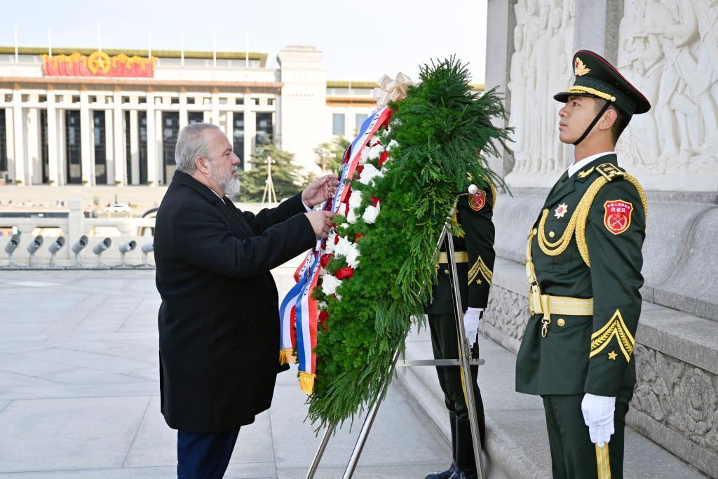 Cuban PM lays wreath at Monument to People's Heroes in Beijing