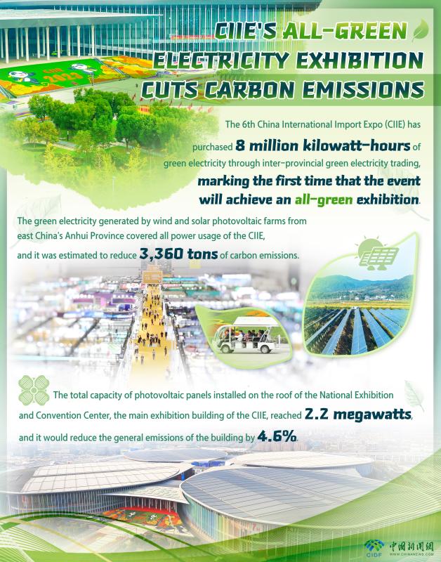 In Numbers: CIIE's all-green electricity exhibition cuts carbon emissions
