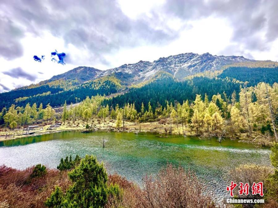 Stunning shades of yellow and orange adorn trees with snow-capped mountains, creating a fairyland scenery at Majiagou valley, Xiaojin County, Aba Tibetan-Qiang Autonomous Prefecture, southwest China's Sichuan Province. (Photo: China News Service/Cheng Bangliang)