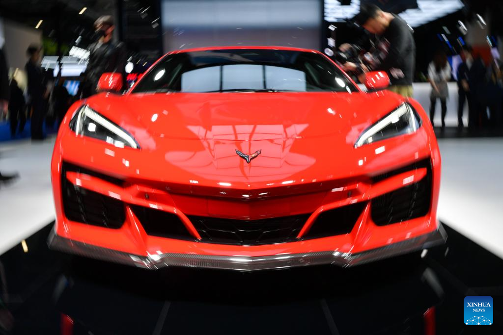 A hybird sports car is exhibited at the automobile exhibition area of the 6th China International Import Expo (CIIE) in east China's Shanghai, Nov. 6, 2023. (Xinhua/Meng Tao)