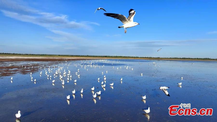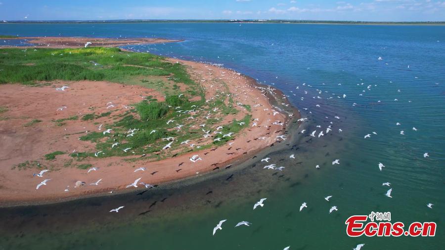 Sandwiched between the Muus Desert in Shaanxi Province and the Erdos Plateau in North China's Inner Mongolia Autonomous Region, Hongjiannao Lake is the largest desert freshwater lake in China and the world's largest breeding habitat for gulls. It is home to over 8,000 relic gulls - 90 percent of the endangered species' world population.