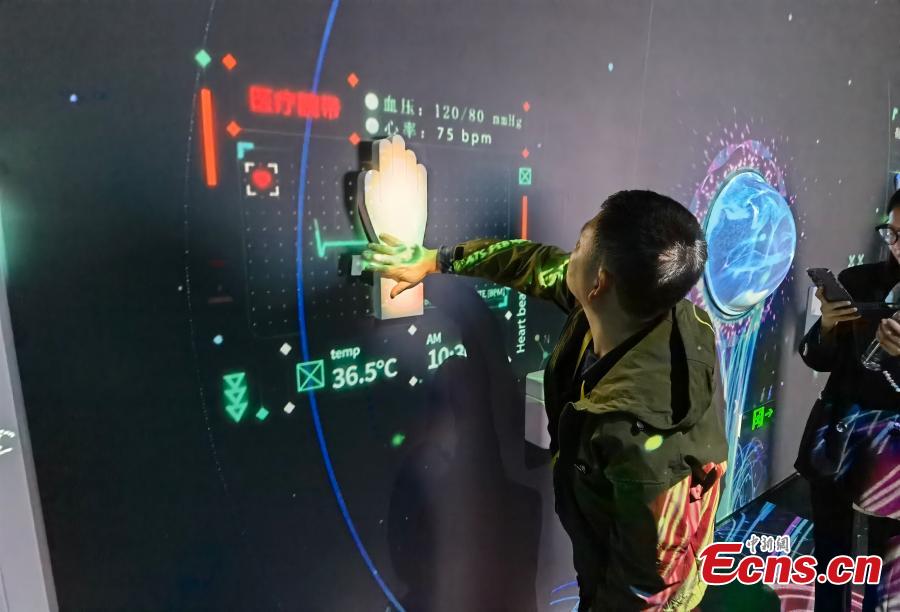Visitors experience future technology at Wuzhen World Internet Science and Technology Museum, the world's first large-scale internet-themed museum in east China's Zhejiang Province, Nov. 7, 2023. (Photo: China News Service/Wang Yifei)