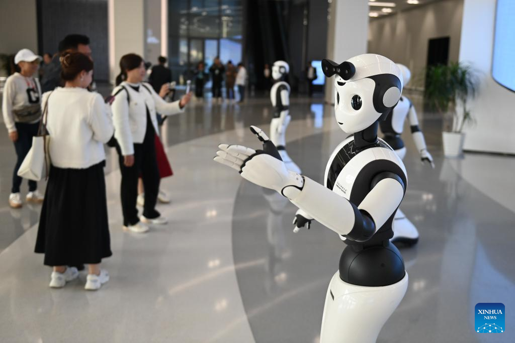 People watch robots dancing at the World Internet Science and Technology Museum in Wuzhen, east China's Zhejiang Province, Nov. 7, 2023. (Xinhua/Huang Zongzhi)