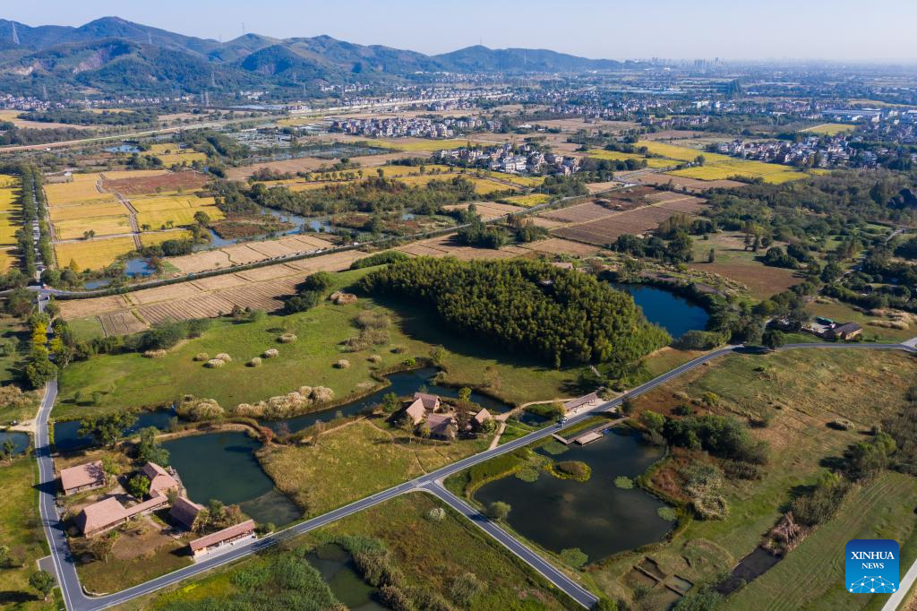 This aerial photo taken on Nov. 7, 2023 shows the view of the Archaeological Ruins of Liangzhu City park in Hangzhou, capital city of east China's Zhejiang Province.?(Xinhua/Xu Yu)