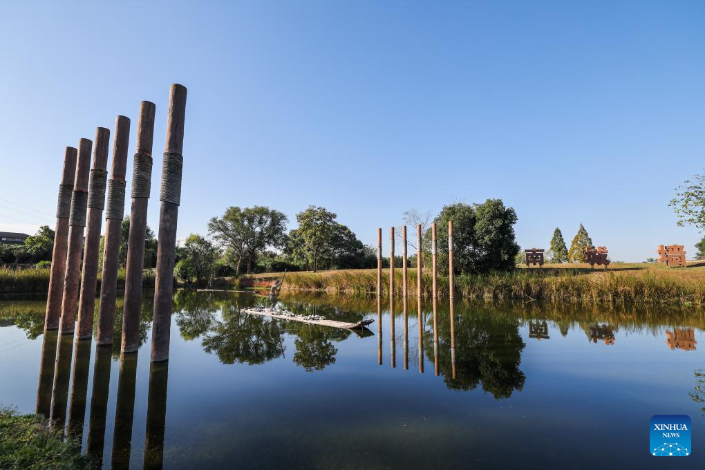 This photo taken on Nov. 7, 2023 shows the an archaeological site at the Archaeological Ruins of Liangzhu City park in Hangzhou, capital city of east China's Zhejiang Province.?(Xinhua/Xu Yu)