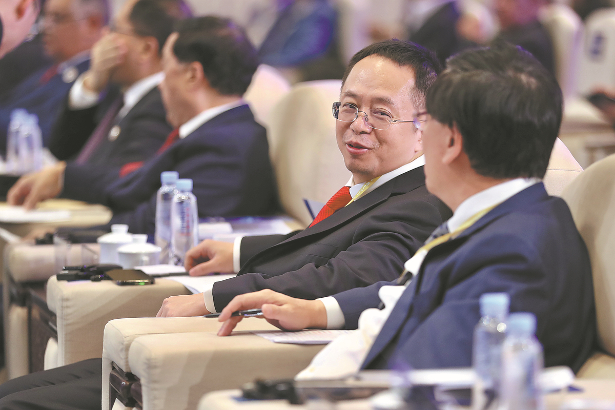 Participants at the 2023 World Internet Conference Wuzhen Summit exchange views prior to the opening of the event on Wednesday in Wuzhen, Zhejiang province. [ZHANG WEI/CHINA DAILY]