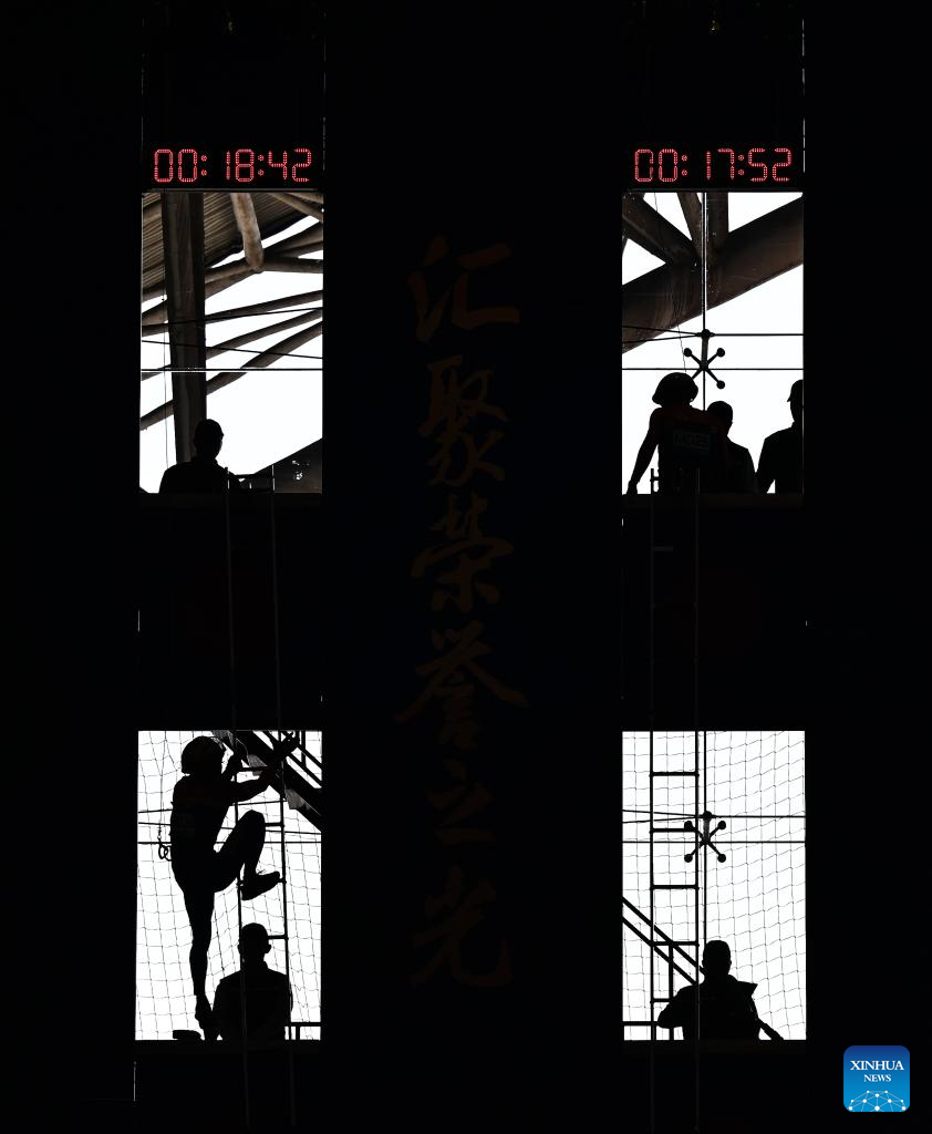 Firefighters compete in the national fire and rescue professional skill competition held in Nanjing, east China's Jiangsu Province, Nov. 8, 2023. A total of 343 firefighters from around the country competed in this skill competition on Wednesday. (Xinhua/Ji Chunpeng)