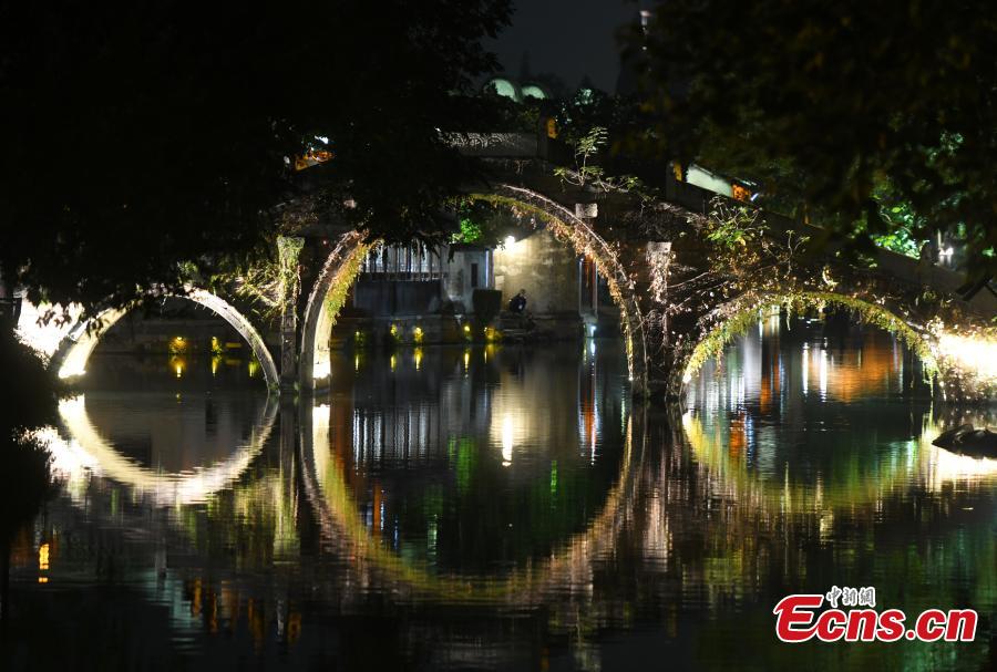 Night scenery of river town Wuzhen in east China's Zhejiang Province. The 2023 World Internet Conference (WIC) Wuzhen Summit kicked off on Wednesday in Wuzhen. (Photo: China News Service/Wang Gang)