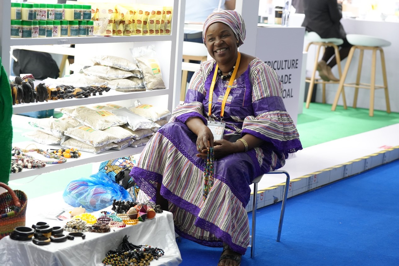 An exhibitor from Mali showcases her handmade products at the sixth China International Import Expo (CIIE) in Shanghai, east China, Nov. 7, 2023. (People’s Daily Online/Wu Chaolan)