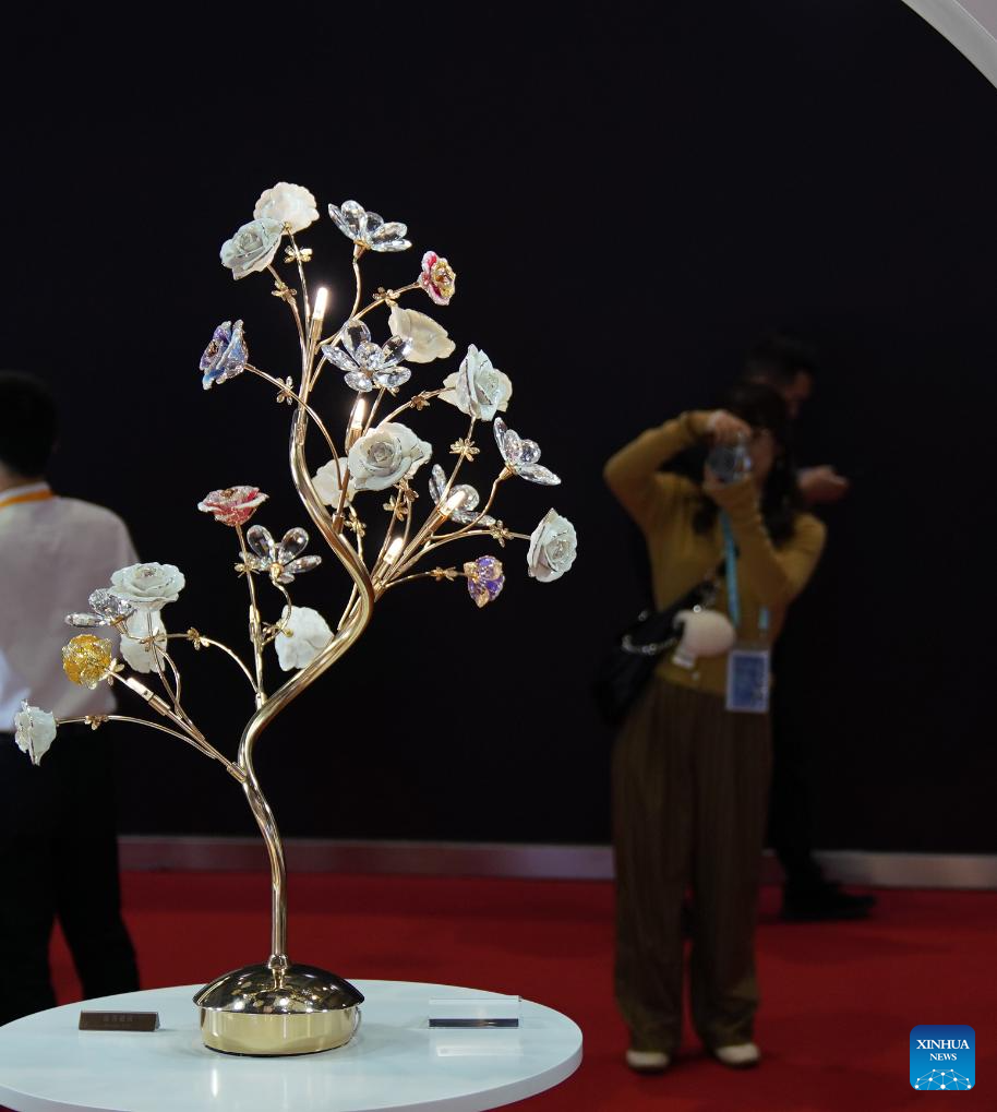 A decoration set with jewels is displayed at the 6th China International Import Expo (CIIE) in east China's Shanghai, Nov. 9, 2023. (Xinhua/Zhang Jiansong)