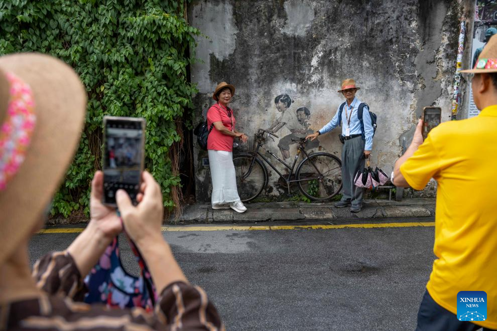 People take photos by a street in Penang, Malaysia, Nov. 9, 2023. (Photo by Chong Voon Chung/Xinhua)