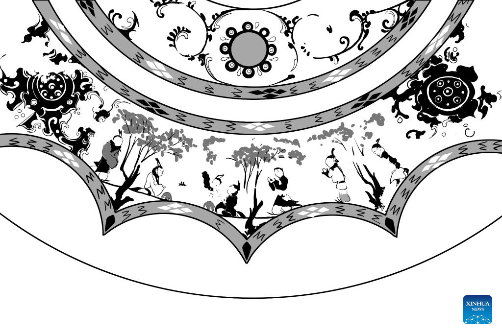 This draft shows part of a bronze mirror with patterns depicting an audience activity, collected at Xi'an Museum in Xi'an, northwest China's Shaanxi Province. (Xinhua/Li He)