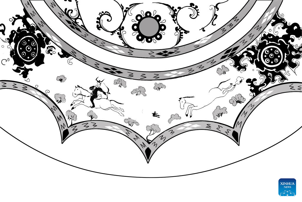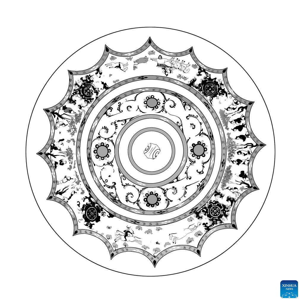 This draft shows part of a bronze mirror with patterns depicting a hunting event, collected at Xi'an Museum in Xi'an, northwest China's Shaanxi Province. (Xinhua/Li He)