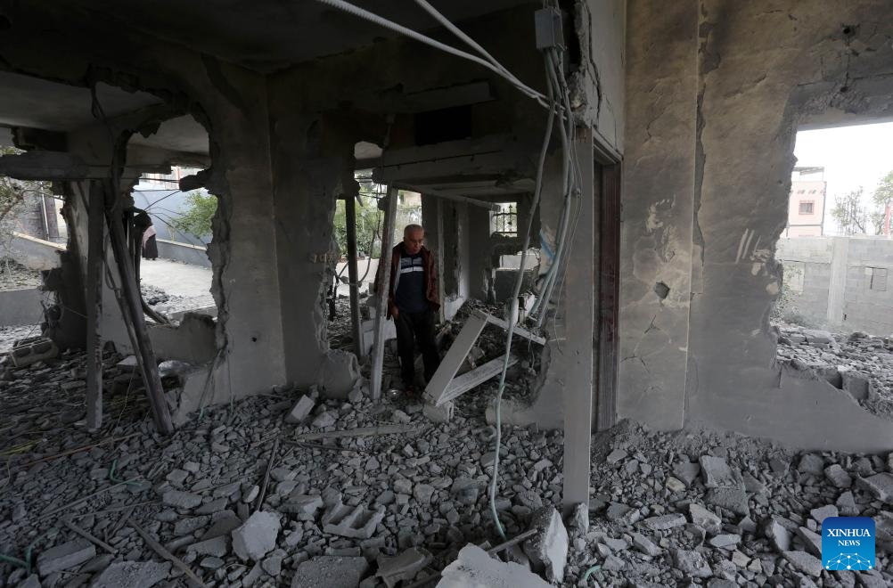 A man is seen inside a building damaged after clashes in a village near the West Bank city of Nablus, on Nov. 14, 2023. At least 196 Palestinians have been killed by Israeli gunfire in the West Bank since a new round of Israeli-Palestinian conflict broke out on Oct. 7, according to WAFA, the official Palestinian news agency. (Photo by Ayman Nobani/Xinhua)