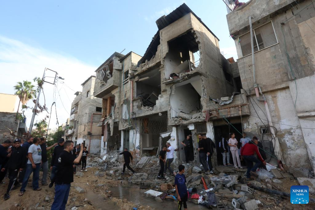 Palestinian people are seen inside a damaged building at a refugee camp in Tulkarm, northern West Bank, on Nov. 14, 2023. At least seven Palestinians were killed on Tuesday in clashes with Israeli soldiers in Tulkarm, northern West Bank, according to the Ramallah-based Palestinian Health Ministry. (Photo by Nidal Eshtayeh/Xinhua)