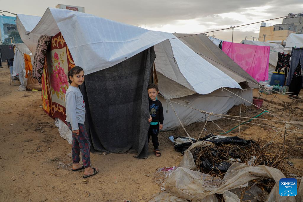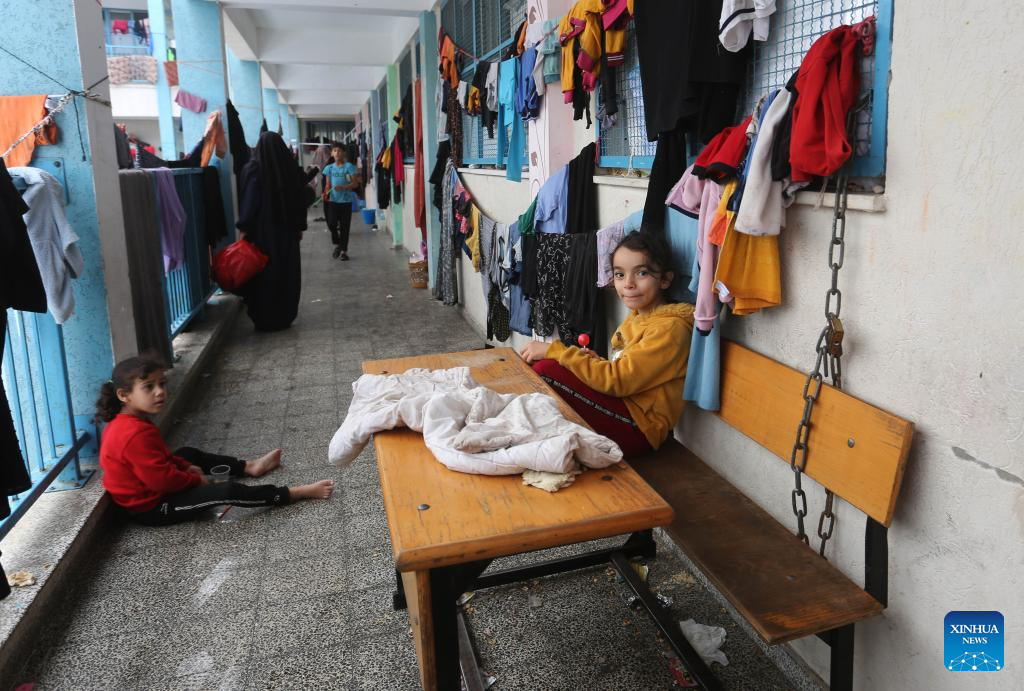 Displaced children are seen at a temporary shelter in the southern Gaza Strip city of Khan Younis, on Nov. 15, 2023. According to the UN Relief and Works Agency for Palestine Refugees in the Near East (UNRWA), almost 1.5 million people have been displaced across the Gaza Strip since October 7, when Hamas carried out a surprise attack on southern Israel. (Photo by Rizek Abdeljawad/Xinhua)