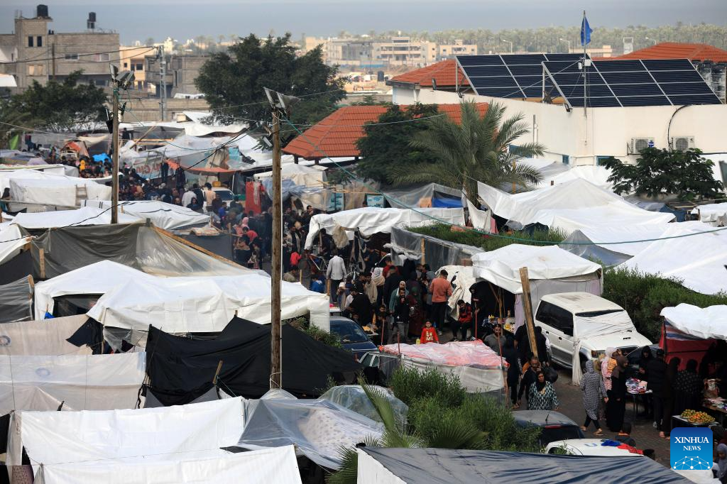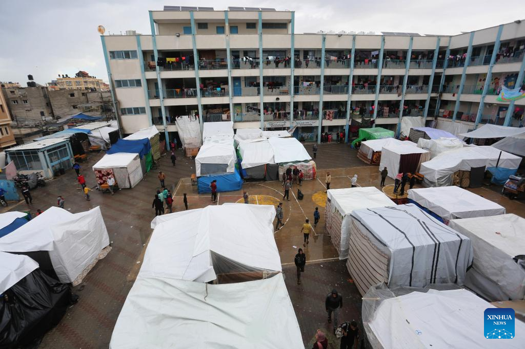 Displaced people are seen at a temporary shelter converted from a school in the southern Gaza Strip city of Rafah, on Nov. 15, 2023. According to the UN Relief and Works Agency for Palestine Refugees in the Near East (UNRWA), almost 1.5 million people have been displaced across the Gaza Strip since October 7, when Hamas carried out a surprise attack on southern Israel. (Photo by Khaled Omar/Xinhua)
