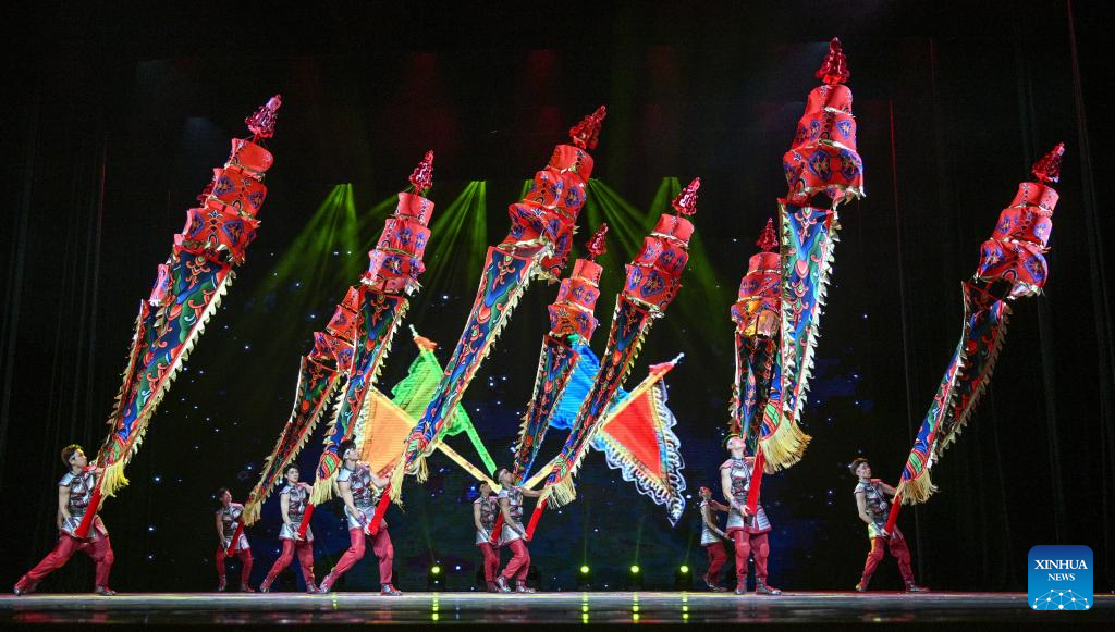 Actors perform during an acrobatic show in Beijing, capital of China, Nov. 17, 2023. A two-day acrobatic show kicked off in Beijing on Saturday. Eleven acrobatic art performing groups across the country bring 12 programs to the show. (Xinhua/Chen Yehua)