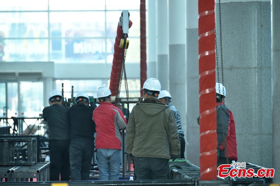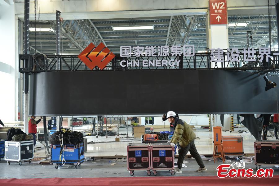 Workers make preparations for the first China International Supply Chain Expo (CISCE) at China Exhibition Center in Shunyi, Beijing, Nov. 21. 2023. (Photo: China News Network/Li Jun)