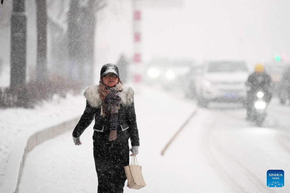 A citizen walks in the snow in Harbin, capital of northeast China's Heilongjiang Province, Nov. 22, 2023. (Xinhua/Wang Jianwei)