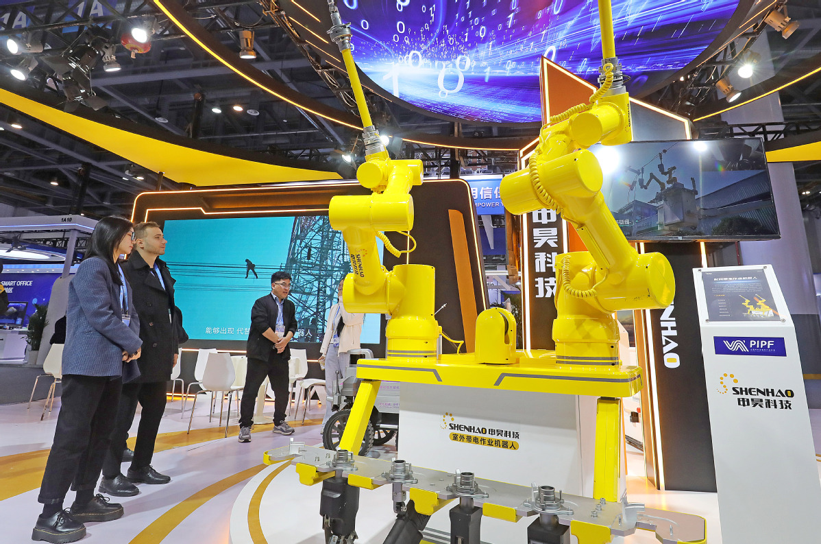 Visitors inspect an industrial robot at the Global Digital Trade Expo, which opened in Hangzhou, Zhejiang province, on Thursday. LIN YUNLONG/FOR CHINA DAILY