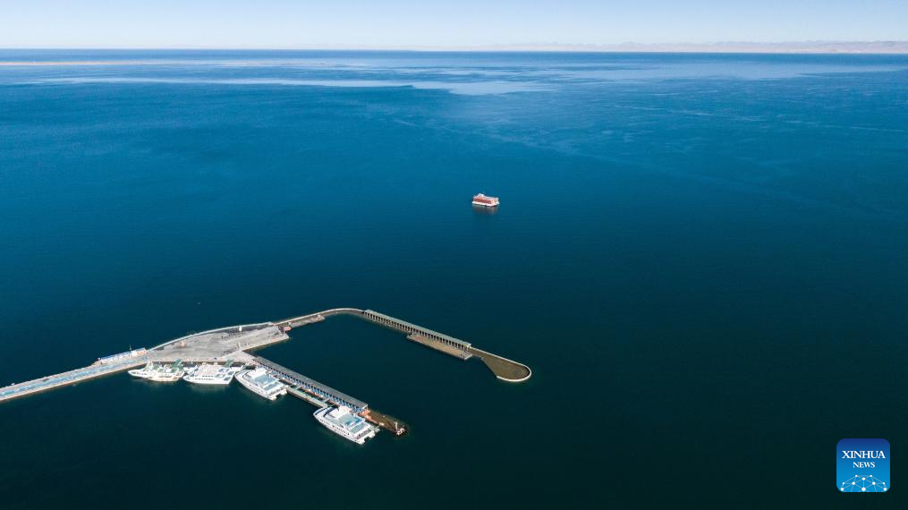 This aerial photo taken on Nov. 23, 2023 shows a view of Qinghai Lake in northwest China's Qinghai Province. (Xinhua/Wang Yan)