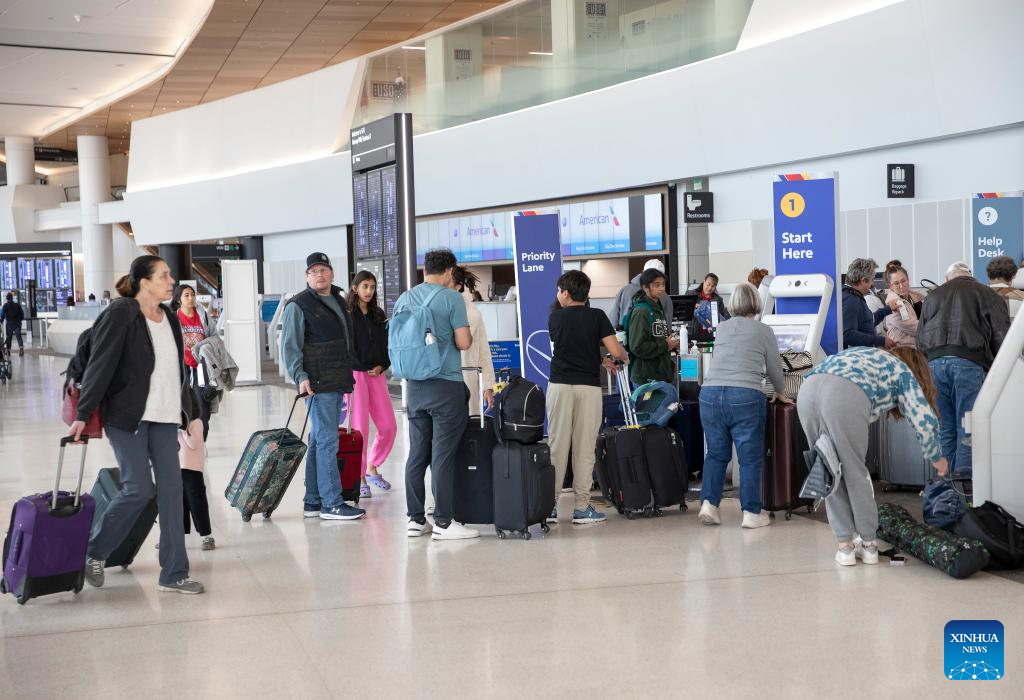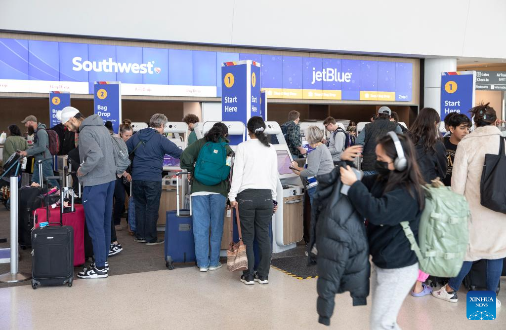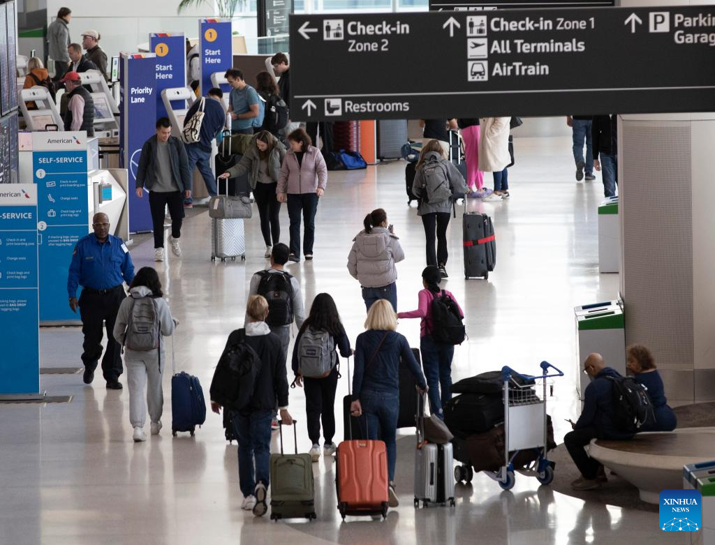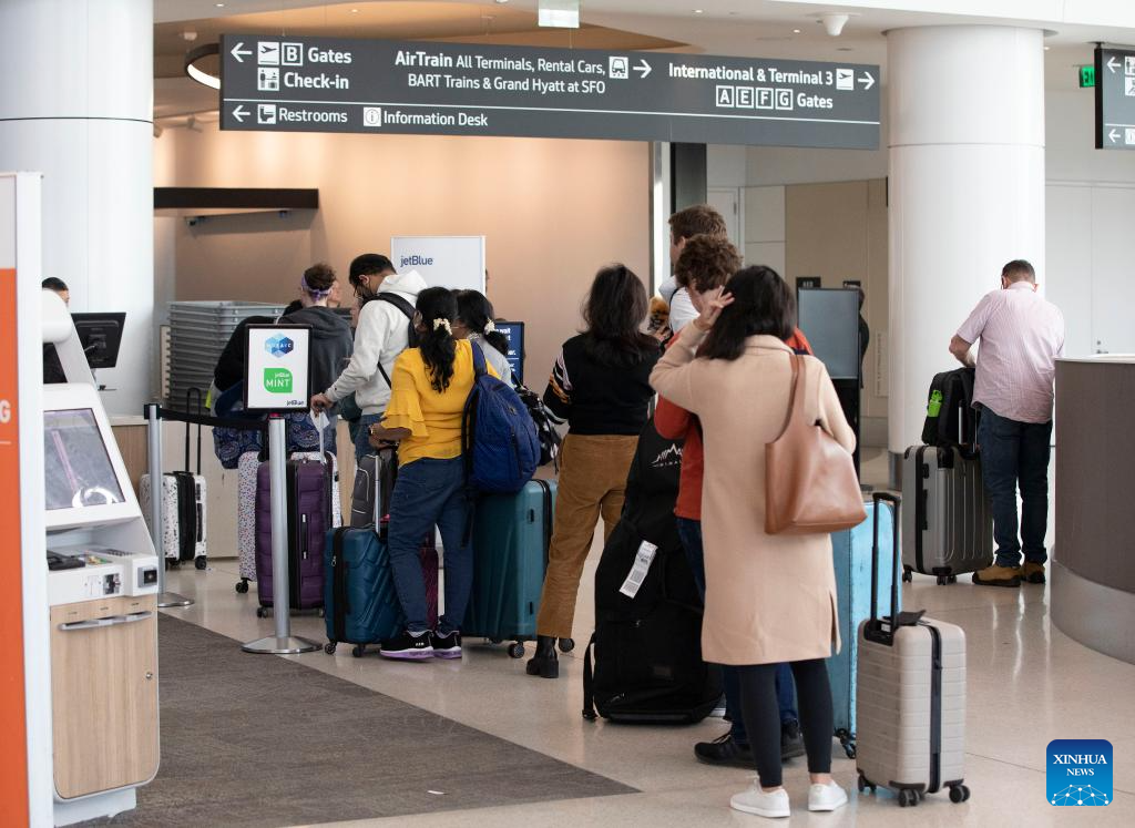 Passengers are pictured at San Francisco International Airport in San Francisco, the United States, Nov. 26, 2023. The U.S. Transportation Security Administration (TSA) expects to screen 2.9 million air passengers on Nov. 26, which will likely be the busiest travel day. (Photo by Li Jianguo/Xinhua)