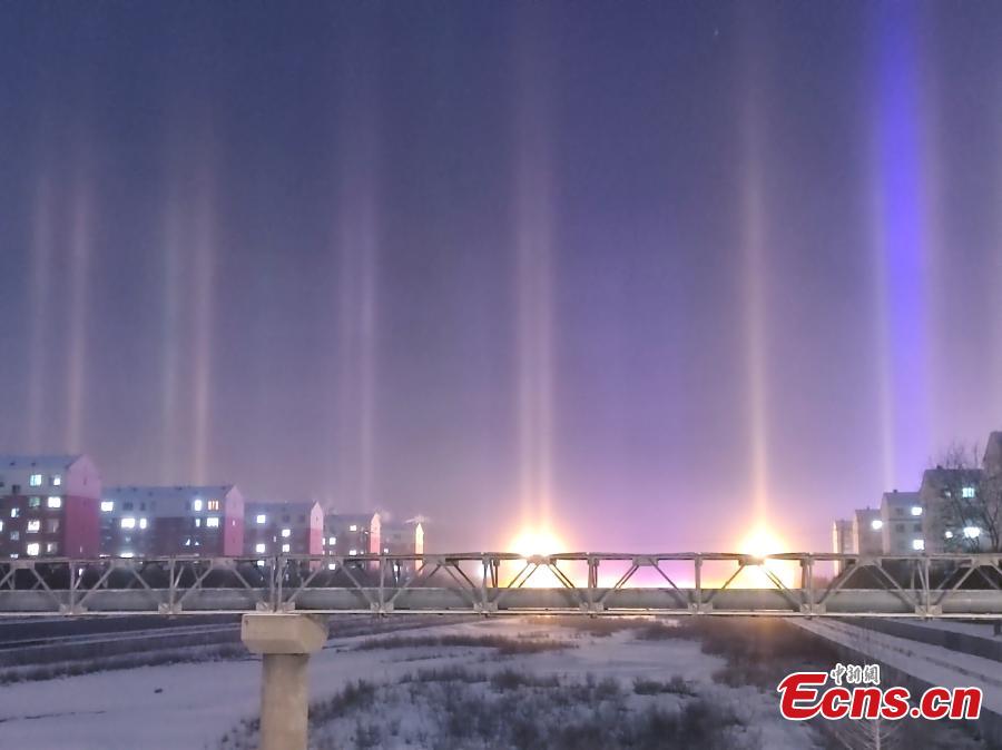 Stunning light pillars dazzle night sky in Inner Mongolia