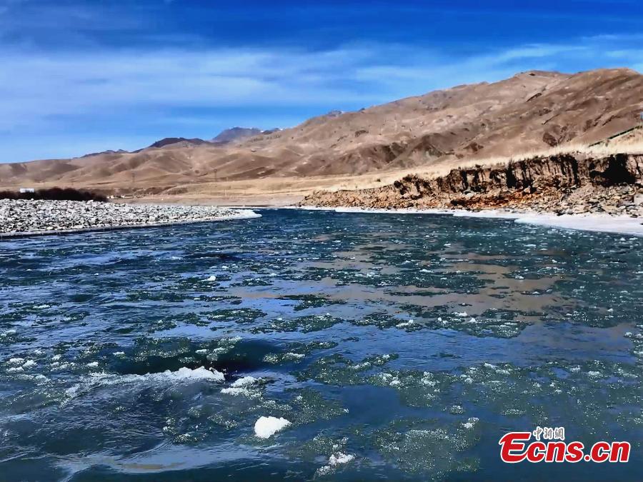 Crystal ice floats in the upper stream of Heihe River in Qilian County, Haibei Tibetan autonomous prefecture, northwest China's Qinghai Province. (Photo: China News Service/Bao Lei)