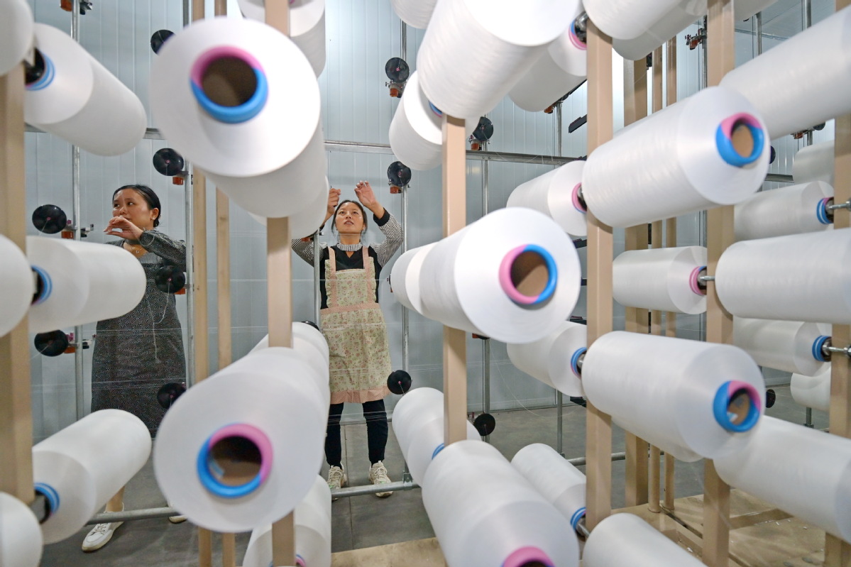 Employees work on the production line of a private textile company in Fuzhou, Jiangxi province. ZHU HAIPENG/FOR CHINA DAILY