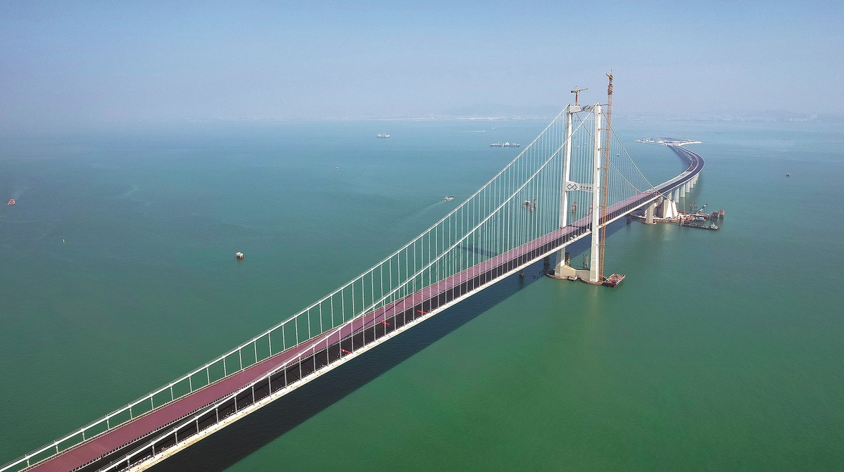 The project, which integrates a bridge, island, tunnel and underwater interchange, starts from the Shenzhen airport interchange, crossing the Pearl River estuary to connect with Ma'anshan Island in Zhongshan.