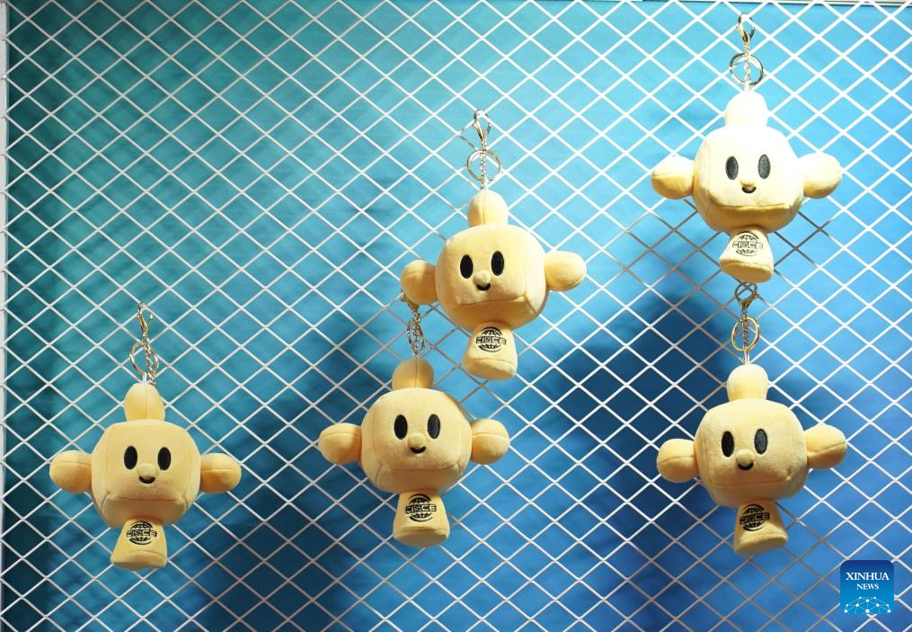 This photo taken on Nov. 29, 2023 shows mascot products of the China International Supply Chain Expo (CISCE) held in Beijing, capital of China. The CISCE opened in Beijing, the first of its kind in the world devoted to promoting industrial and supply chain collaboration. (Xinhua/Li He)