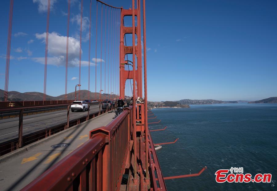 Pedestrians walk across the Golden Gate Bridge in San Francisco, California, the United States, Nov. 30, 2023. (Photo: China News Service/Liu Guanguan)
