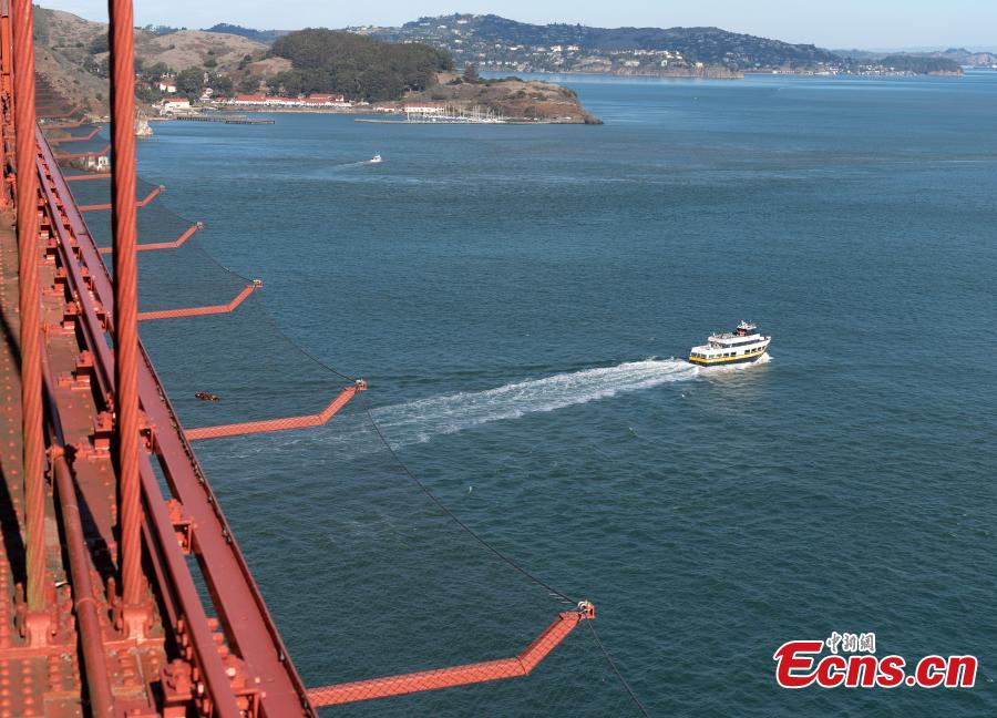 Construction workers work on the Golden Gate Bridge for the suicide prevention barrier in San Francisco, California, the United States, Nov. 30, 2023. (Photo: China News Service/Liu Guanguan)