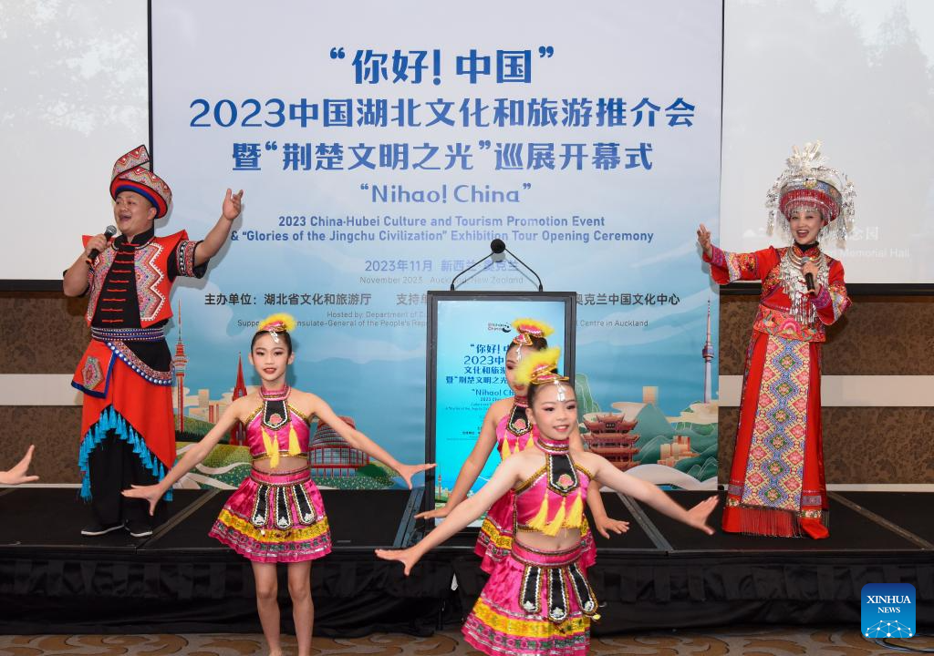 Artists perform at the 2023 China-Hubei Culture and Tourism Promotion Event in Auckland, New Zealand, Nov. 30, 2023. China's Hubei Province promoted its unique culture and tourism on Thursday in Auckland, New Zealand's largest city. (Xinhua/Guo Lei)