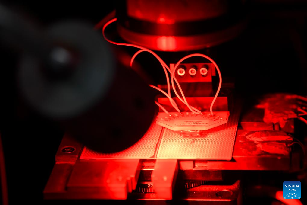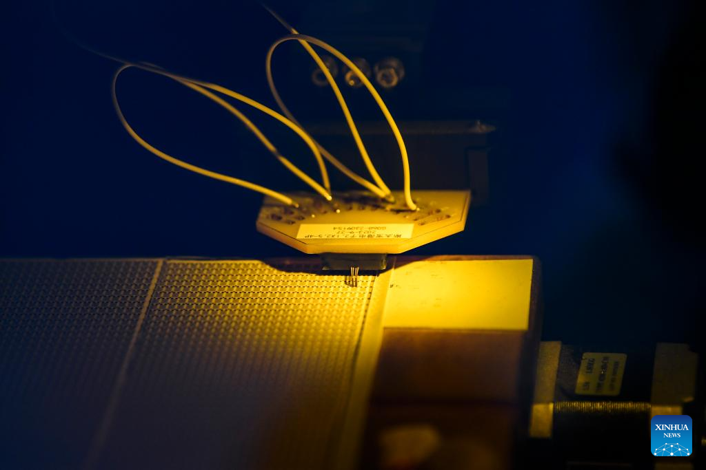 This photo taken on Nov. 30, 2023 shows a scene at a testing workshop of a smart technology company at a sensor industrial park in Chongqing, southwest China. In recent years, the Beibei District of Chongqing has worked together with China Railway Construction Corporation Limited (CRCC) in building a sensor industrial park. By introducing preferential policies, support funds and investment, the park is aimed at promoting the intelligent sensor industry to develop in a large-scale, specialized, differential and high-end way. (Xinhua/Wang Quanchao)