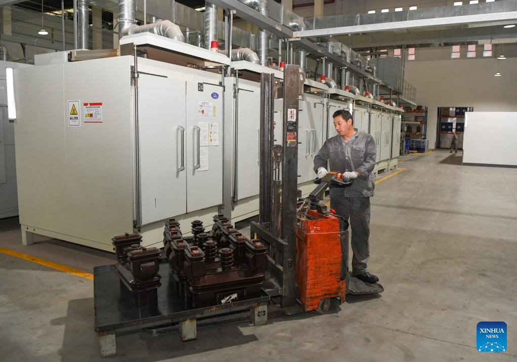 A worker is seen at a production workshop of a meter company at a sensor industrial park in Chongqing, southwest China, Nov. 30, 2023. In recent years, the Beibei District of Chongqing has worked together with China Railway Construction Corporation Limited (CRCC) in building a sensor industrial park. By introducing preferential policies, support funds and investment, the park is aimed at promoting the intelligent sensor industry to develop in a large-scale, specialized, differential and high-end way. (Xinhua/Wang Quanchao)