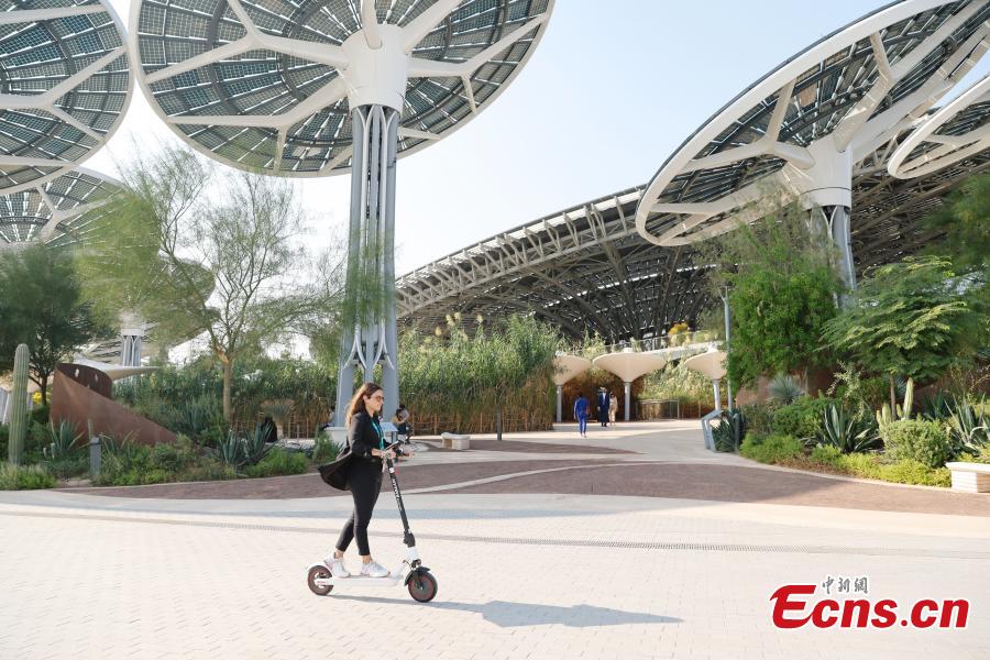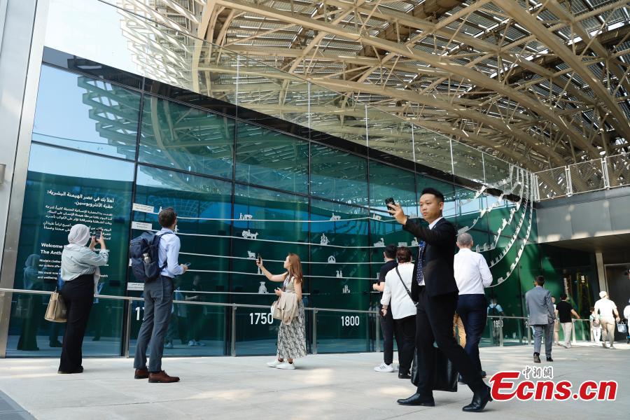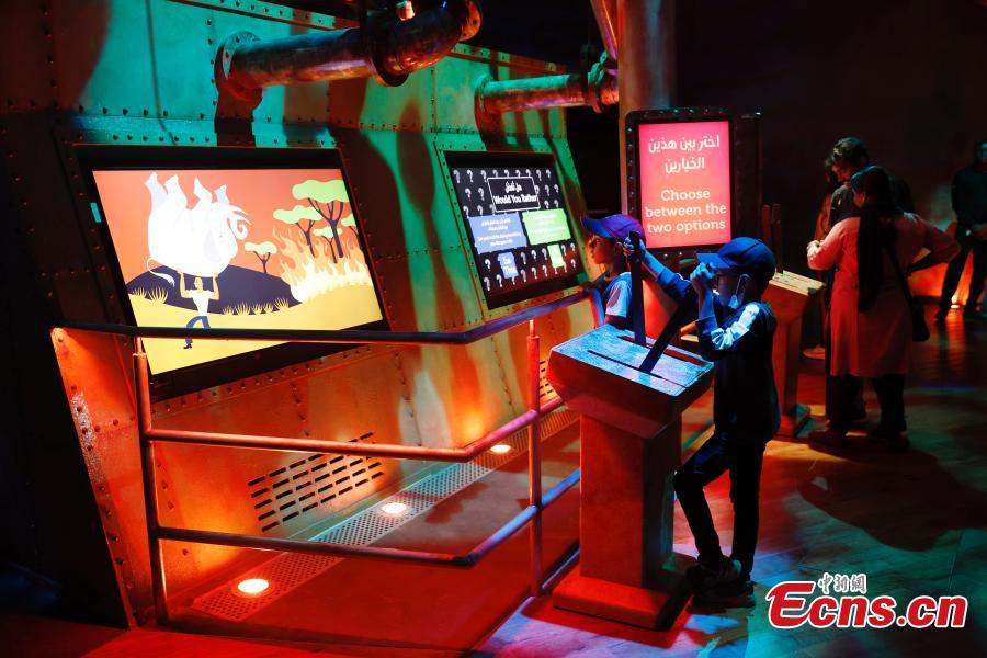 Participants visit an exhibition on climate change at the Green Zone of the 28th session of the Conference of the Parties to the United Nations Framework Convention on Climate Change (COP28), in Dubai, the United Arab Emirates, Dec. 4, 2023. (Photo: China News Service/Han Haidan)