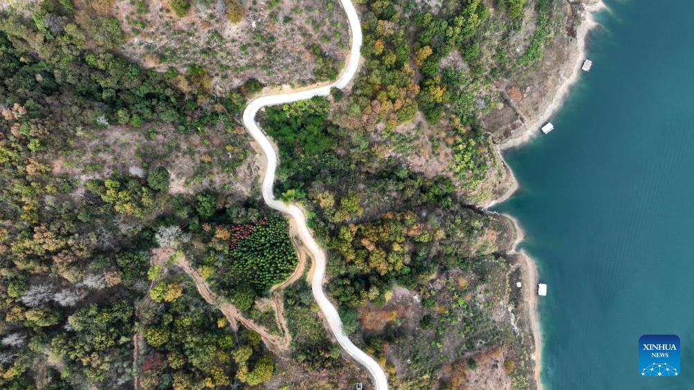 This aerial photo taken on Dec. 6, 2023 shows a view of Hongshui River in Luodian County of Bouyei-Miao Autonomous Prefecture of Qiannan, southwest China's Guizhou Province. (Xinhua/Yang Ying)