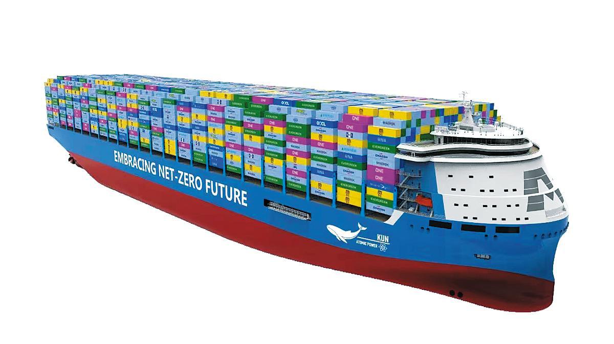 An illustration of the large nuclear-powered container ship, which can carry 24,000 standard containers. [Photo provided to China Daily]