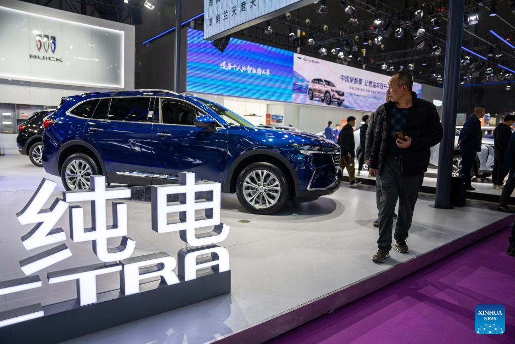 People visit an automobile exposition at the Changsha International Convention and Exhibition Center in Changsha, central China's Hunan Province, Dec. 6, 2023. The 19th China (Changsha) International Automobile Exposition opened here on Wednesday, which gathers products from more than 80 automobile-related brands in an exhibition area of 100,000 square meters. (Xinhua/Chen Sihan)