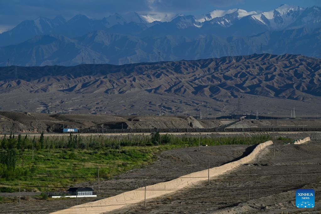 A part of the Great Wall is seen in Yemawan village of Xincheng township, Jiayuguan City, northwest China's Gansu Province, July 14, 2023. Gansu Province is home to multiple sections of the Great Wall that add up to 3,654 kilometers in length. The Hexi Corridor, a critical part of the ancient Silk Road winding through south of the province, boasts more than 1,400 kilometers of the Wall built in the Han Dynasty (202 BC-220 AD), and over 1,200 kilometers erected in the Ming Dynasty (1368-1644). Gansu is therefore dubbed "an open-air museum of the Great Wall." (Xinhua/Liu Jinhai)