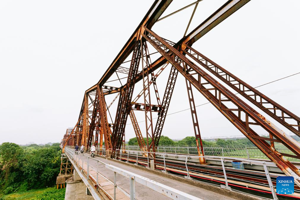 This photo taken on June 22, 2023 shows a view of Long Bien Bridge, a historic cantilever bridge across the Red River, in Hanoi, capital of Vietnam.?(Photo by Pham Dinh Duc/Xinhua)