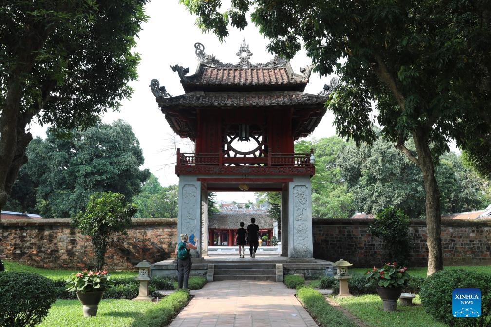 This photo taken on May 15, 2019 shows the Khue Van Cac, the Constellation of Literature Pavilion, in Van Mieu-Quoc Tu Giam (Temple of Literature) in Hanoi, capital of Vietnam.?(Xinhua/Wang Di)
