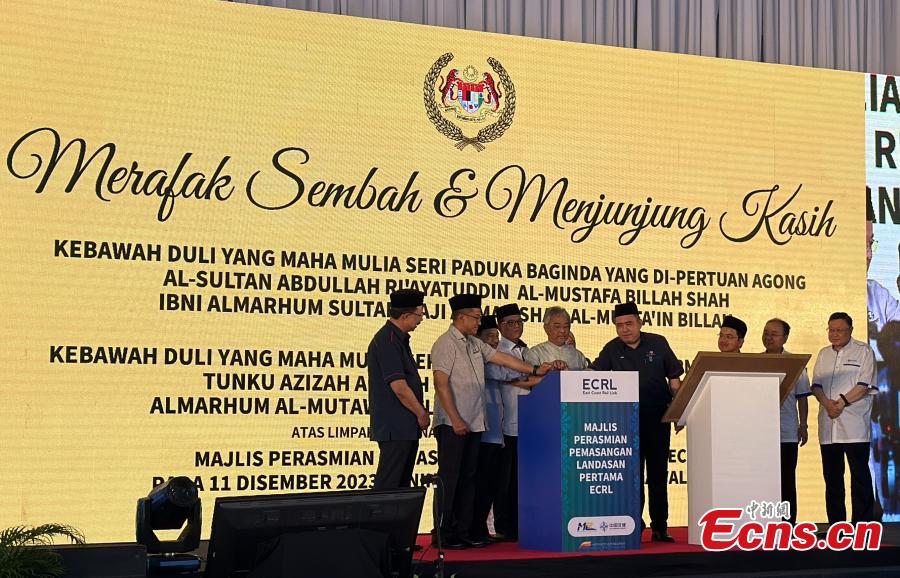 A launching ceremony of the East Coast Rail Link project is held in Kuantan, Malaysia on Dec. 11, 2023. (Photo: China News Service/Chen Yue)