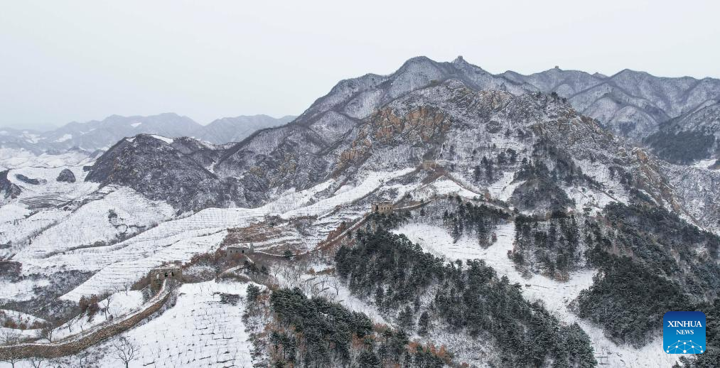 This aerial photo taken on Dec. 14, 2023 shows a view of the Great Wall in Qianxi County, north China's Hebei Province. (Photo by Liu Mancang/Xinhua)